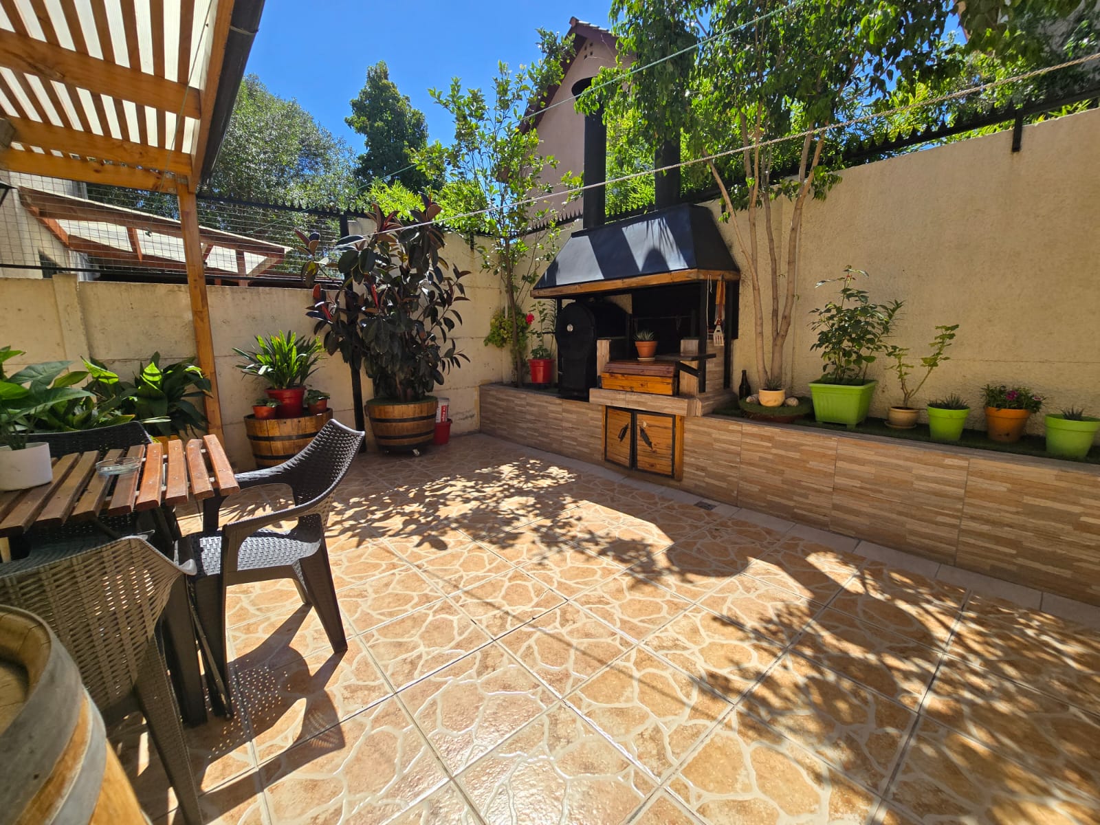 Casa en Venta en Maipú por 165,000,000 pesos. Ubicada en Pasaje Krishna, esta propiedad cuenta con 97 m2 de construcción y 129 m2 de terreno. Posee living comedor con salida a terraza, cocina ampliada amoblada y equipada, 4 habitaciones, aire acondicionado en escalera de 24.000 BTU, 2 estacionamientos (1 interior y otro exterior pasaje cerrado con portón automático pje y casa) y 1 bodega. Además, incluye una espaciosa terraza de 25 m2 con quincho y horno y está orientada a todas las direcciones ya que no es pareada.